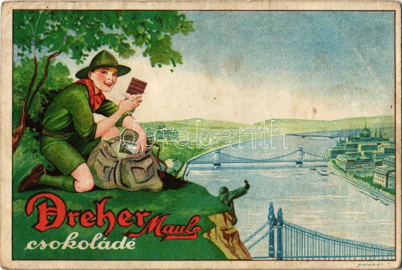 Dreher Maul csokoládé reklámlapja, cserkész a Gellért-hegyen / Hungari... https://www.darabanth.com/de/356-Fernauktion/356.0/Ansichtskarten/Werbungen~1500062/Dreher-Maul-csokolade-reklamlapja-cserkesz-a-Gellert-hegyen-Hungarian-chocolate-advertisemen~II2015082