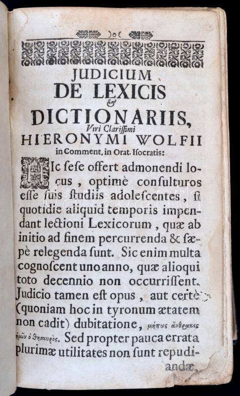 Szenczi Molnár Albert (1574-1634): Dictionarium Ungarico-Latino-Germanicum. Innumeris Vocibus Ungaricis Formulisque loquendi Latiné redditis, Nunc quarta vice locupletatum. Pars II. Norimbergae [Nürnberg],1758,Martini Endteri [Martin Endter], 4+18-1391 (18-1389 kéthasábos számozással)+780 p. Váci György könyvkötő mester által restaurált egészbőr-kötésben, foltos lapokkal, egy lapon szakadással, hiánnyal, a címlapot követő oldal és az első hasábszámozott lap (18/19.) között hiánnyal. Váczi György könyvkötő névjegykártyájával, rajta saját kezű kézírásával, aláírásával.