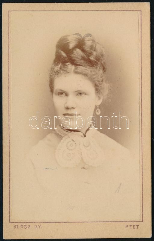 1872 Hölgy portré, keményhátú fotó Klösz György pesti, Hatvani utcai m... https://www.darabanth.com/de/356-Fernauktion/356.0/Fotografie/Foto~500020/1872-Holgy-portre-kemenyhatu-foto-Klosz-Gyorgy-pesti-Hatvani-utcai-mutermebol-10x6-cm~II2041681