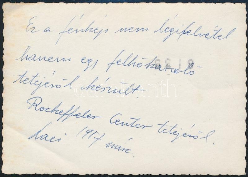 Beschreibung: 1957 New York, kilátás a Rockefeller Center tetejéről, fotó, hátulján feliratozva, 9×12,5 cm