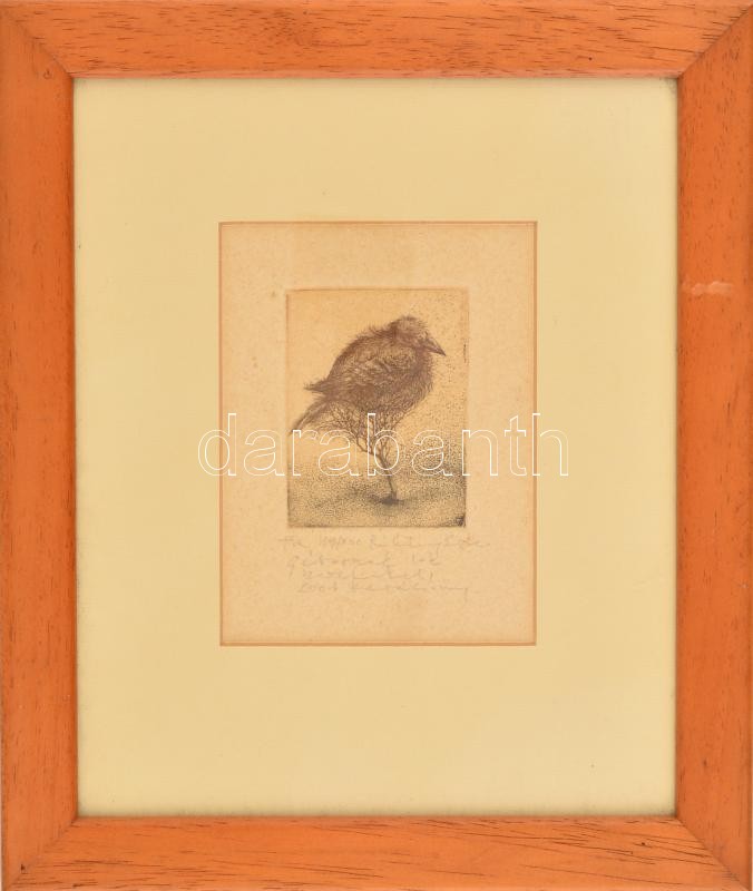 Beschreibung: Rékassy Eszter (1966-): Fa. Rézkarc, papír, jelzett, üvegezett keretben, 7,5×6 cm