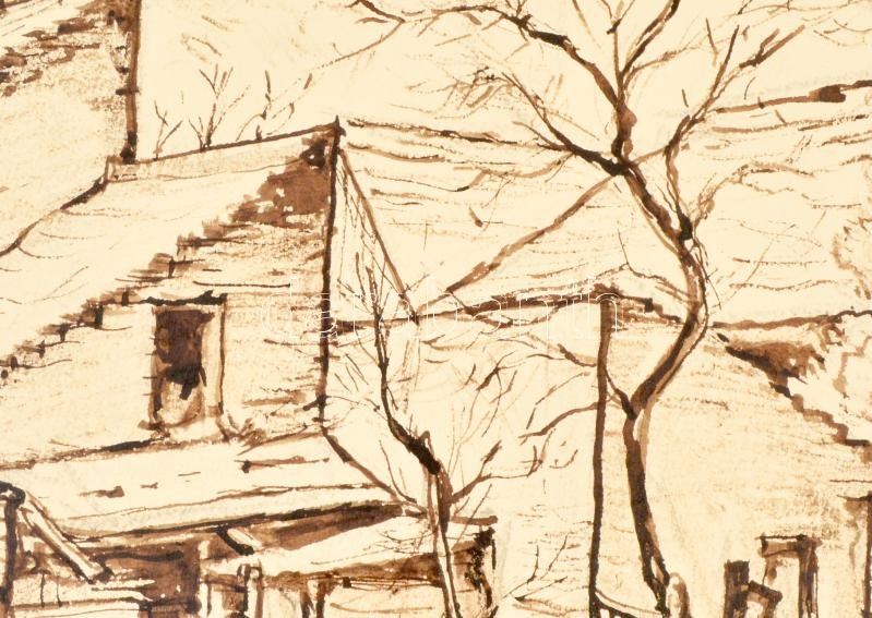 Beschreibung: Sostarics Lajos (1896-1968): Óbuda, Zápor utca, tus, papír, jelzett, kartonra ragasztva, 21,5×30 cm