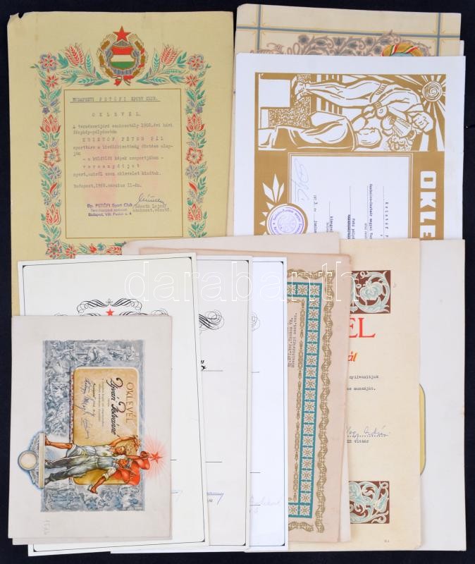 cca 1960-1980 15 db szocreál oklevél. https://www.darabanth.com/de/356-Fernauktion/356.0/Kunst-Dokumente-andere-Sammelgebiete/Dokument~500017/cca-1960-1980-15-db-szocreal-oklevel~II2019517