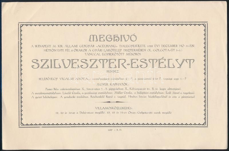Beschreibung: 1919-1928 2 db régi meghívó, Pécsi Villamos Telep zártkörűen báli meghívója, budapesti M. Kir. Állami Gépgyár "Acélhang" Dalegyesületének szilveszteri megivói