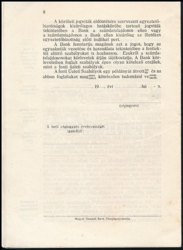 Beschreibung: 1949 A Magyar Nemzeti Bank folyószámla üzlet üzletszabályzata 8p.