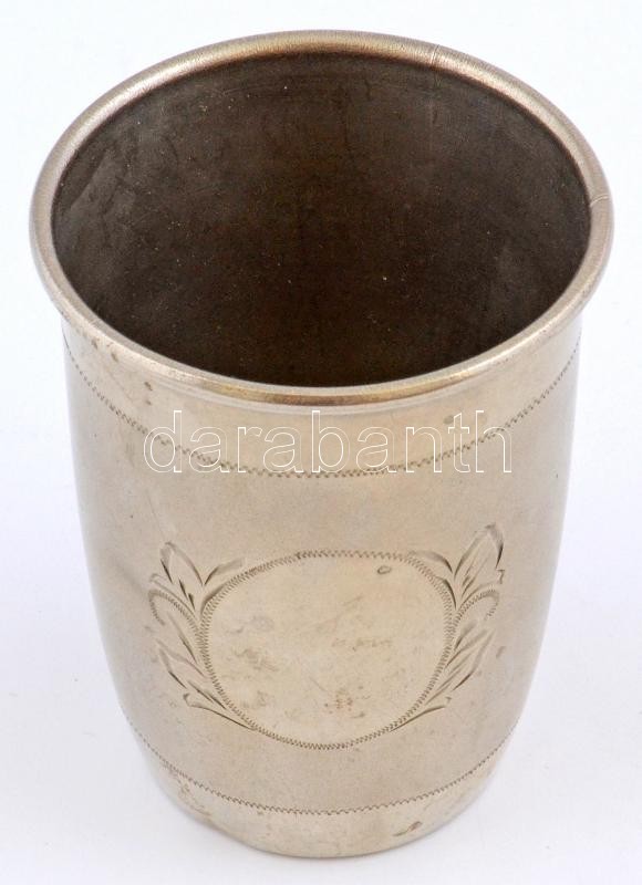 Beschreibung: Díszes alpakka keresztelő pohár, apró ütődéssel, 7x5 cm