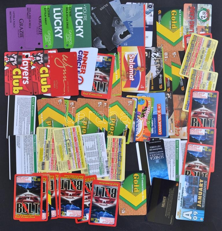 Beschreibung: Vegyes bolha tétel: 12 db kaszinókártya + telefonkártyák, hotel belépőkártyák, kanadai metrókártyák, stb., összesen 75 db