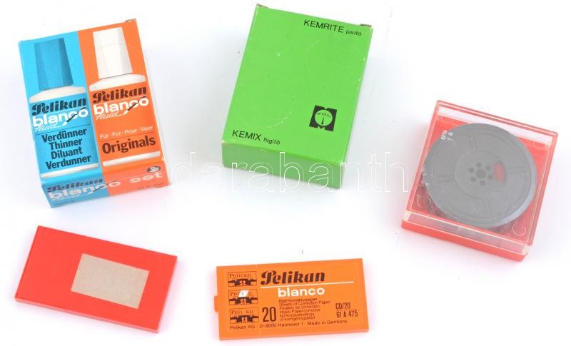 Vegyes írószer tétel (Kores írógépszalag, Pelikán hibajavító, stb.), 5... https://www.darabanth.com/de/356-Fernauktion/356.0/Kunst-Dokumente-andere-Sammelgebiete/Flohmarkt~500011/Vegyes-iroszer-tetel-Kores-irogepszalag-Pelikan-hibajavito-stb-5-db~II2016372