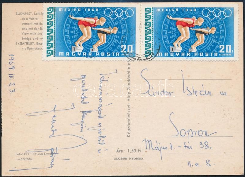 Beschreibung: 1969 Fekete István író saját kézzel írt képeslapja