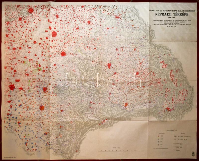 1940 Erdélynek és Magyarország keleti részeinek néprajzi térképe 1910-ben, 1:500000, Bp., Magyar Statisztikai Társaság Államtudományi Intézete, 105×86 cm