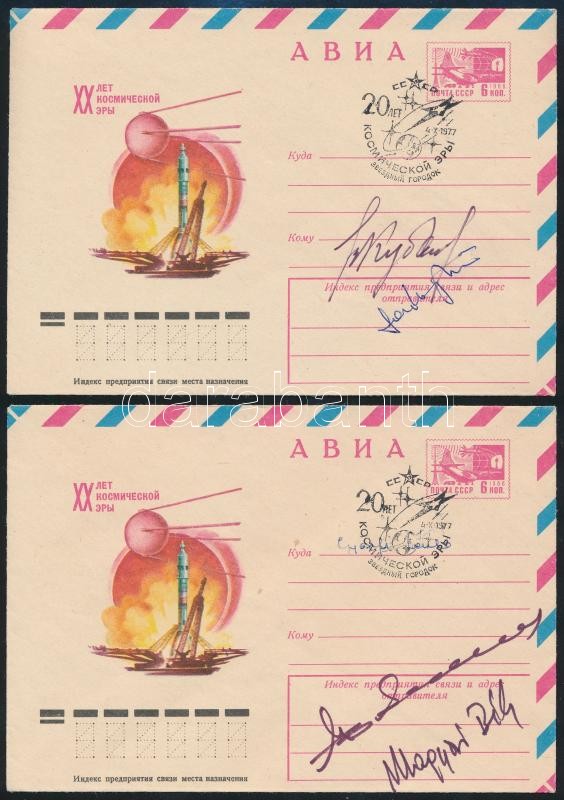 Beschreibung: Farkas Bertalan és Magyari Béla űrhajósok aláírásai 2 db űrhajós borítékon