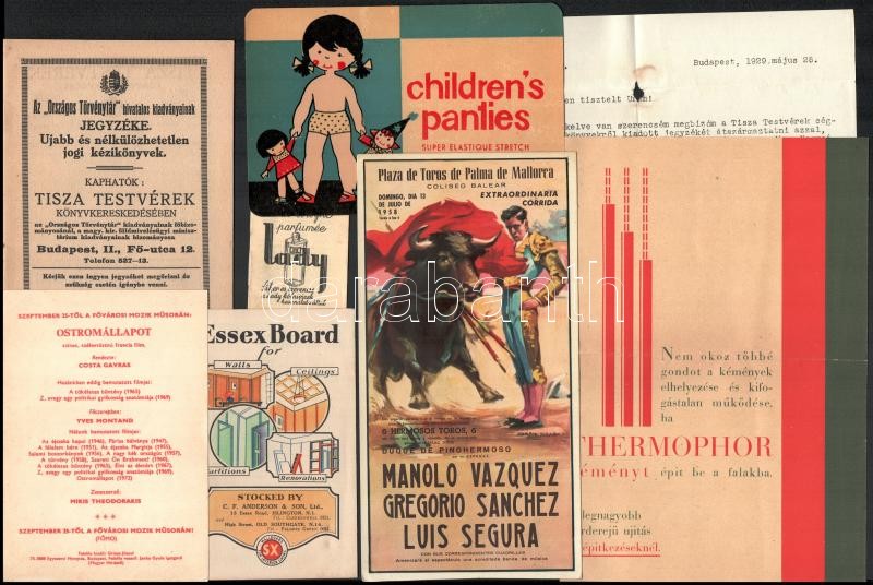 Beschreibung: cca 1940 7 db reklám nyomtatvány