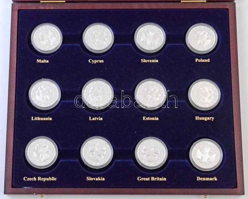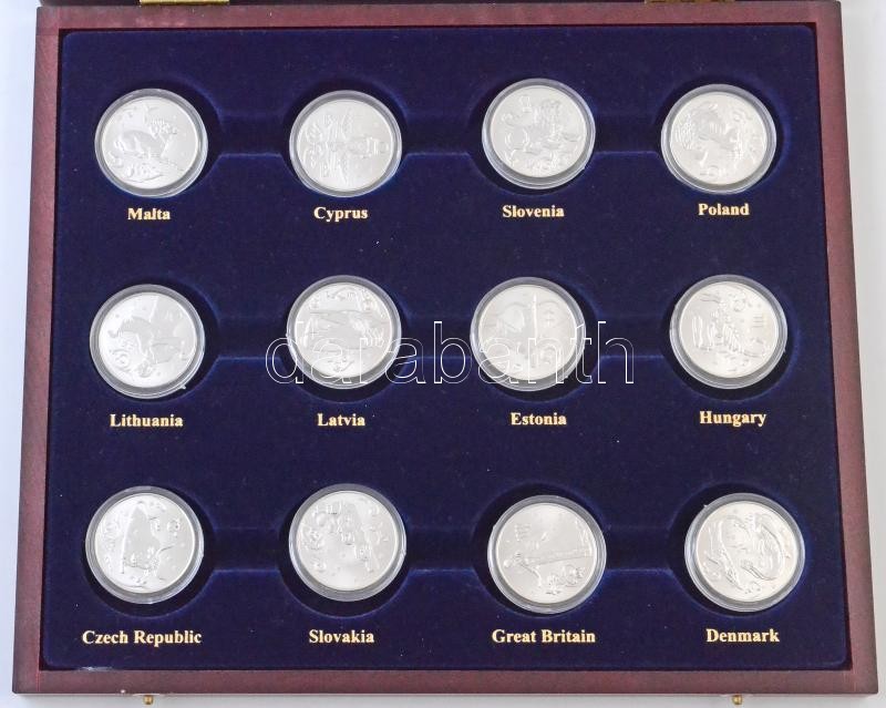 Beschreibung: Oroszország 2005. 2R "Csillagjegyek" (12xklf) másolatai ~15,56g-os súlyban, Ag(?), Uniós tagállamok neveivel előnyomott fa dísztokban T:PP