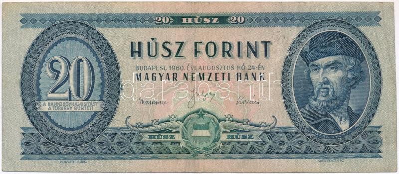 1960. 20Ft T:III Hungary 1960. 20 Forint C:F Adamo F12 https://www.darabanth.com/de/356-Fernauktion/356.0/Numismatik/Ungarische-Banknoten~2500008/1960-20Ft-TIII-Hungary-1960-20-Forint-CF-Adamo-F12~II2033662