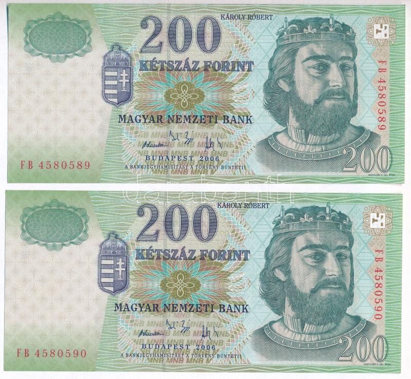 2006. 200Ft "FB" (2x) sorszámkövetők T:I https://www.darabanth.com/de/356-Fernauktion/356.0/Numismatik/Ungarische-Banknoten~2500008/2006-200Ft-FB-2x-sorszamkovetok-TI~II2036604
