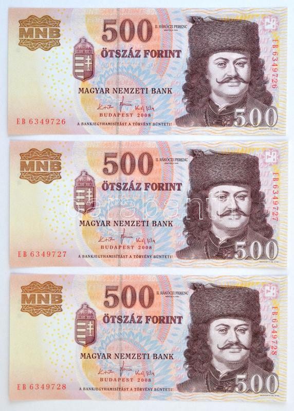 Beschreibung: 2008. 500Ft "EB" (3x) sorszámkövetők T:I,I-