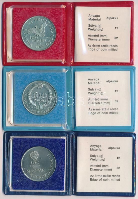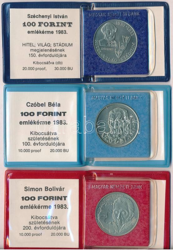 Beschreibung: 1983. 100Ft alpakka "Simon Bolivár" + 1983. 100Ft alpakka "Czóbel Béla" + 1983. 100Ft alpakka "Széchenyi István" mindegyik eredeti tokban, tanúsítvánnyal T:BU