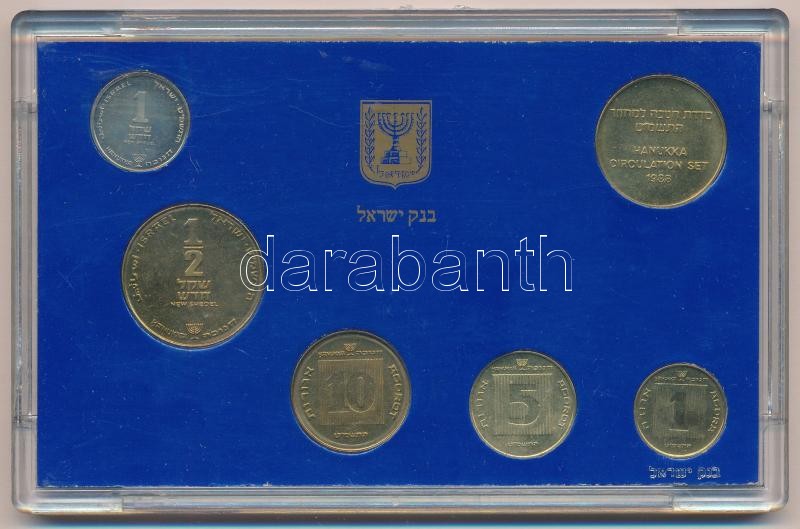 Israel 1988. 1 Agora - 1 New Sheqel (5xdiff) "Hanukka" + "Bank of Israel" commemorative medal in set, in packing of the Bank of Israel C:UNC