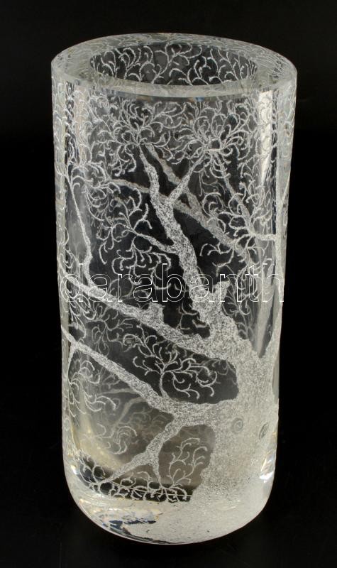 Ólomkristály váza, homok fújt mintával, jelzés nélkül, hibátlan, m: 23... https://www.darabanth.com/de/356-Fernauktion/356.0/Porzellan-Keramik-Glass/Glaser~500008/Olomkristaly-vaza-homok-fujt-mintaval-jelzes-nelkul-hibatlan-m-23-cm~II2036230