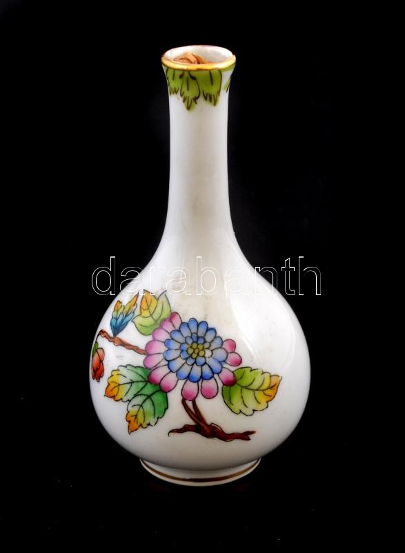 Beschreibung: Herendi Viktória mintás porcelán kis váza, kézzel festett, jelzett, kopásnyomokkal, m: 8 cm
