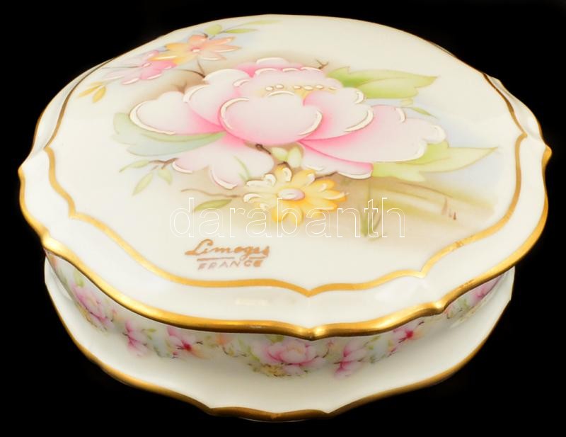 Limoges bonbonier, részben kézzel festett, jelzett, apró kopásnyomokka... https://www.darabanth.com/de/356-Fernauktion/356.0/Porzellan-Keramik-Glass/Porzellan~500007/Limoges-bonbonier-reszben-kezzel-festett-jelzett-apro-kopasnyomokkal-d14-cm~II1990582