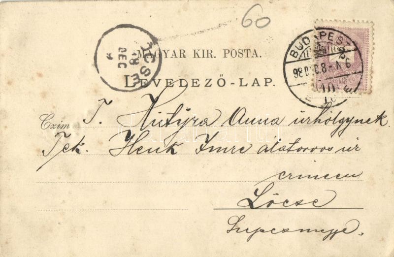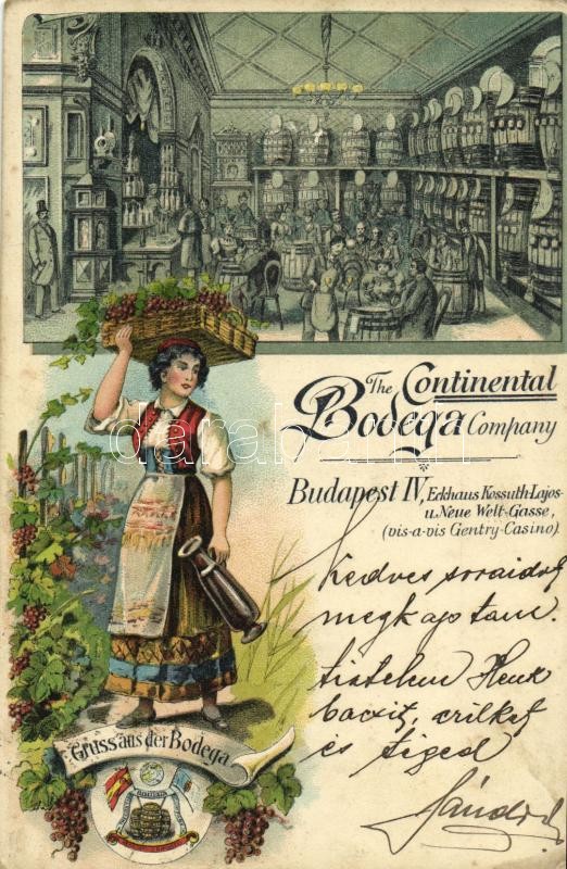 1898 (Vorläufer!) Budapest V. The Continental Bodega Company borcsarnoka, belső, reklámlap. Kossuth Lajos utca 18. az Országos Kaszinó tőszomszédságában. Art Nouveau, floral, litho (felületi sérülés / surface damage)