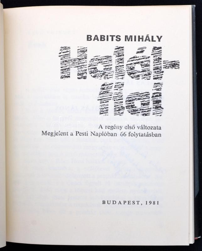 Babits Mihály: Halálfiai. Bp., 1981. k.n. Az utószót írtó Téglás János... https://www.darabanth.com/de/357-Fernauktion/357.0/Bucher/Bucher-Andere-kuriositaten~2000091/Babits-Mihaly-Halalfiai-Bp-1981-kn-Az-utoszot-irto-Teglas-Janos-dedikalasaval-Eg~II2017673