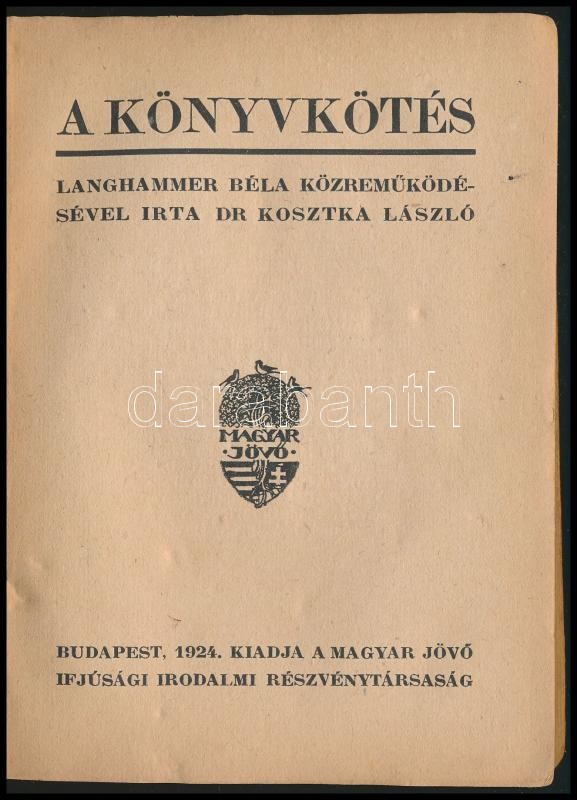 Kosztka László: A könyvkötés. Bp., 1924. Magyar Jövő. Kiadói papírköté... https://www.darabanth.com/de/357-Fernauktion/357.0/Bucher/Bucher-Andere-kuriositaten~2000091/Kosztka-Laszlo-A-konyvkotes-Bp-1924-Magyar-Jovo-Kiadoi-papirkotesben~II2052484