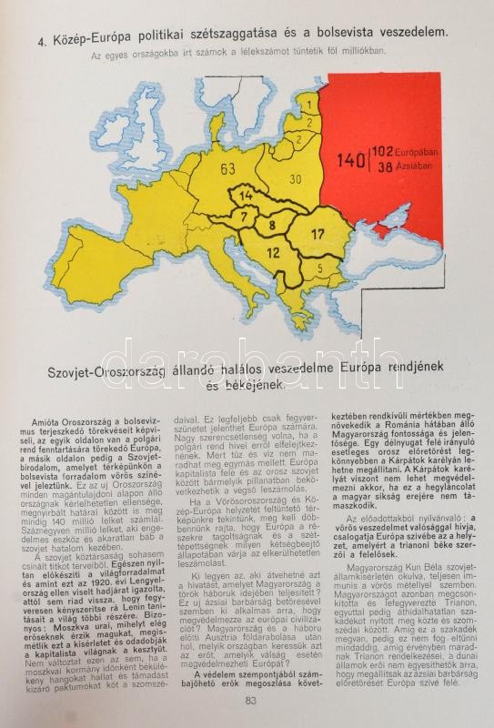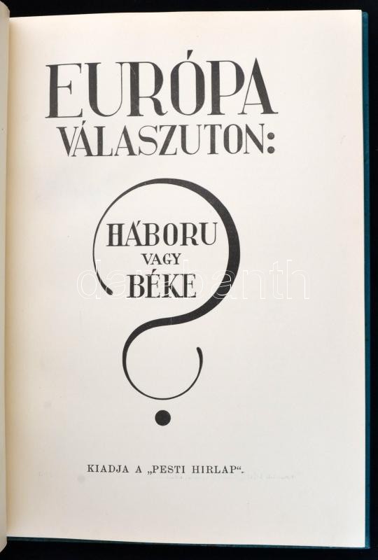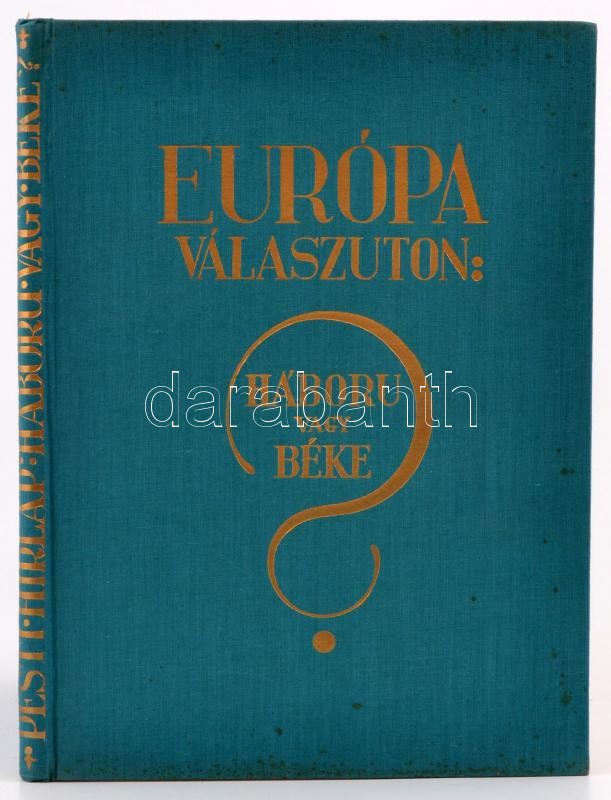 Európa válaszúton: Háború vagy béke? Bp.,(1933), Pesti Hírlap. Irredenta kiadvány, szövegközti ábrákkal, térképekkel illusztrált. Kiadói aranyozott egészvászon-kötés, jó állapotban.