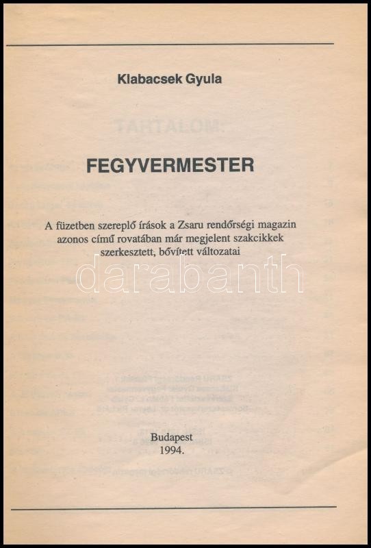 Klabacsek Gyula: Fegyvermester. Zsaru Rendőrségi Füzetek 1. Bp.,1994, ... https://www.darabanth.com/de/357-Fernauktion/357.0/Bucher/Bucher-Militaria~2000088/Klabacsek-Gyula-Fegyvermester-Zsaru-Rendorsegi-Fuzetek-1-Bp-1994-Zsaru-Kiadoi-papirkote~II2049636