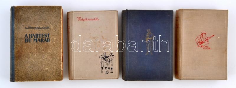 vitéz Somogyváry Gyula: És Mihály harcolt..., A hadtest hű marad, Ne sárgulj, fűzfa!, Virágzik a mandula. Egészvászon és félvászon kötésben, kopottas állapotban.