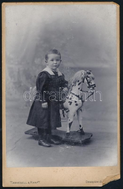 1901 Gyerek hintalóval. Feliratozott, sérült 16x11 cm https://www.darabanth.com/de/357-Fernauktion/357.0/Fotografie/Foto~500020/1901-Gyerek-hintaloval-Feliratozott-serult-16x11-cm~II2051620