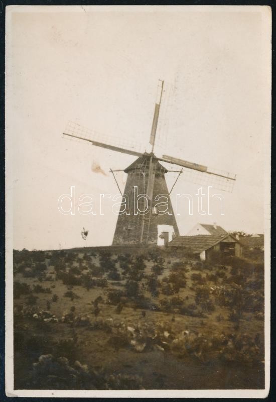 1931 Kiskunhalas, szélmalom, fotó, 8,5×5,5 cm / windmill https://www.darabanth.com/de/357-Fernauktion/357.0/Fotografie/Foto~500020/1931-Kiskunhalas-szelmalom-foto-8-5C3975-5-cm-windmill~II2049682