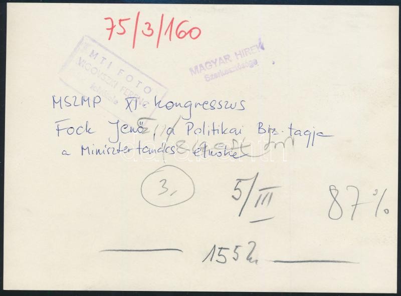 1975 Az MSZMP XI. Kongresszusa, Fock Jenő (1916-2001) beszédet mond, V... https://www.darabanth.com/de/357-Fernauktion/357.0/Fotografie/Foto~500020/1975-Az-MSZMP-XI-Kongresszusa-Fock-Jeno-1916-2001-beszedet-mond-Vigovszki-Ferenc-pecsettel-j~II2029638