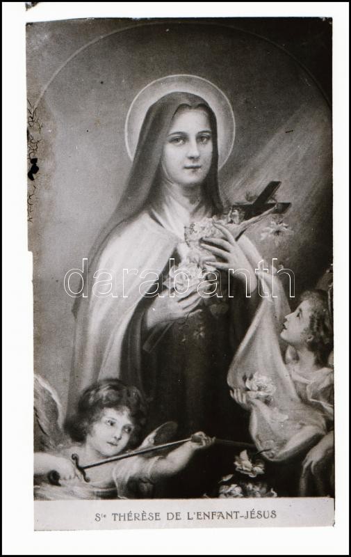 cca 1900 Szent Teréz és a kis Jézus szentkép, üvegnegatív, a szélein r... https://www.darabanth.com/de/357-Fernauktion/357.0/Fotografie/Foto~500020/cca-1900-Szent-Terez-es-a-kis-Jezus-szentkep-uvegnegativ-a-szelein-ragasztott-modern-tokba~II2052068