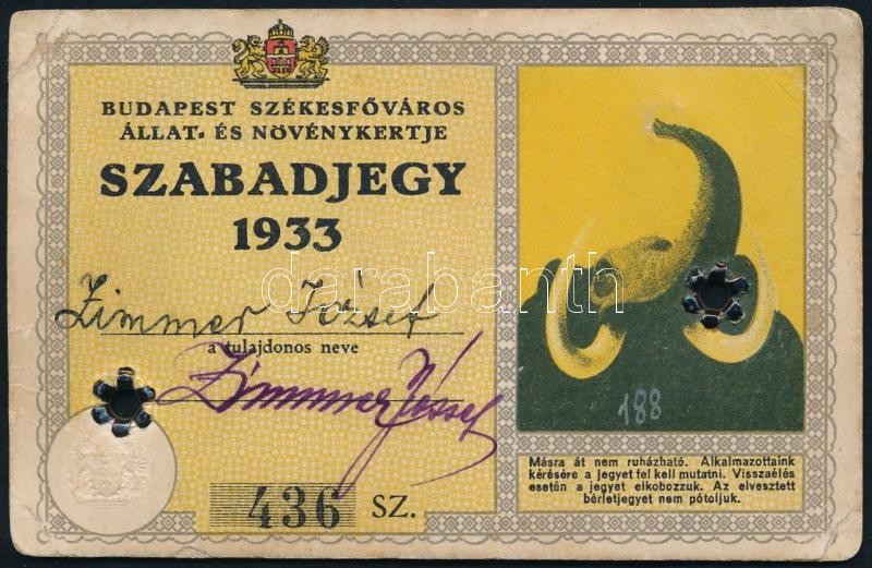1933 Budapest Székesfőváros Állat- és Növénykertje által kiadott fényk... https://www.darabanth.com/de/357-Fernauktion/357.0/Kunst-Dokumente-andere-Sammelgebiete/Dokument~500017/1933-Budapest-Szekesfovaros-Allat-es-Novenykertje-altal-kiadott-fenykepes-szabadjegy-az-1~II2052139