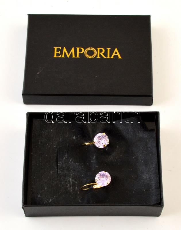 Beschreibung: Emporia bizsu fülbevalópár, lila kővel, eredeti dobozában, jó állapotban