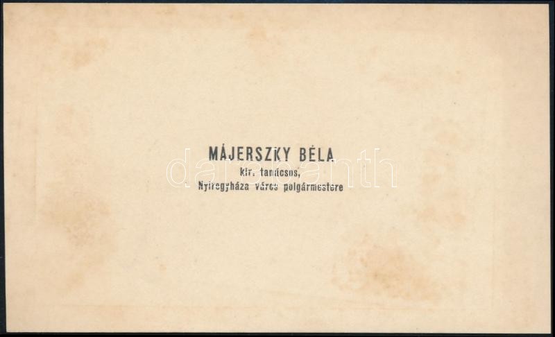 1913 Majerszky Béla, Nyíregyháza polgármesterének aláírt névjegykártyá... https://www.darabanth.com/de/357-Fernauktion/357.0/Kunst-Dokumente-andere-Sammelgebiete/Signatur~500019/1913-Majerszky-Bela-Nyiregyhaza-polgarmesterenek-alairt-nevjegykartyaja~II2051808