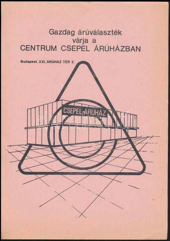 cca 1980 Csepel Áruház plakátja, 29×21 cm https://www.darabanth.com/de/357-Fernauktion/357.0/Kunst-Dokumente-andere-Sammelgebiete/Werbungen~500021/cca-1980-Csepel-Aruhaz-plakatja-29C39721-cm~II2052783