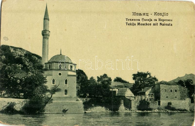 Konjic, Tekija Moschee mit Narenta / Turkish mosque, Neretva riverside... https://www.darabanth.com/de/358-Fernauktion/358.0/Ansichtskarten/Bosnien-und-Herzegowina~1000021/Konjic-Tekija-Moschee-mit-Narenta-Turkish-mosque-Neretva-riverside-W-L-Bp-4732-worn-corne~II2055661