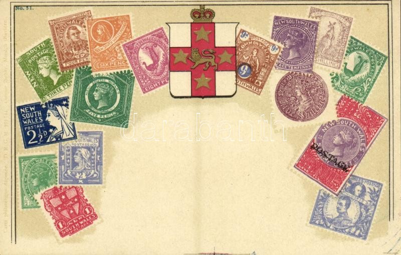New South Wales / Stamps, coat of arms of New South Wales. Carte Phila... https://www.darabanth.com/de/358-Fernauktion/358.0/Ansichtskarten/Briefmarken~1000056/New-South-Wales-Stamps-coat-of-arms-of-New-South-Wales-Carte-Philatelique-Ottmar-Zieher-No-51-~II2060291