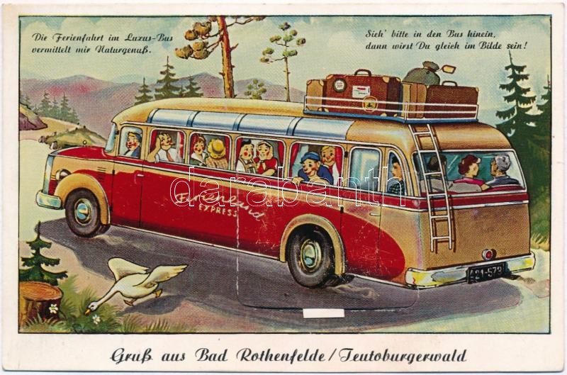 Bad Rothenfelde, modern leporellocard with autobus https://www.darabanth.com/de/358-Fernauktion/358.0/Ansichtskarten/Deutschland~1000041/Bad-Rothenfelde-modern-leporellocard-with-autobus~II2057056