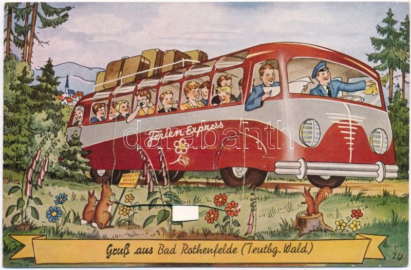 Bad Rothenfelde, modern leporellocard with autobus https://www.darabanth.com/de/358-Fernauktion/358.0/Ansichtskarten/Deutschland~1000041/Bad-Rothenfelde-modern-leporellocard-with-autobus~II2057057