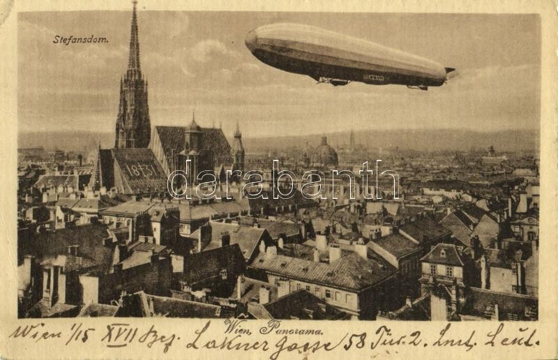 Wien, Vienna, Bécs; Stefansdom, Panorama / general view with airship (... https://www.darabanth.com/de/358-Fernauktion/358.0/Ansichtskarten/Fesselballons~1000073/Wien-Vienna-Becs-Stefansdom-Panorama-general-view-with-airship-EK~II2057791
