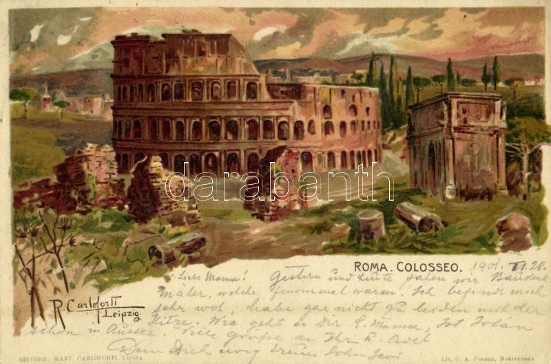 1901 Roma, Rome; Colosseo / Colosseum. litho s: Raff. Carloforti (EK) https://www.darabanth.com/de/358-Fernauktion/358.0/Ansichtskarten/Italien~1000043/1901-Roma-Rome-Colosseo-Colosseum-litho-s-Raff-Carloforti-EK~II2057001