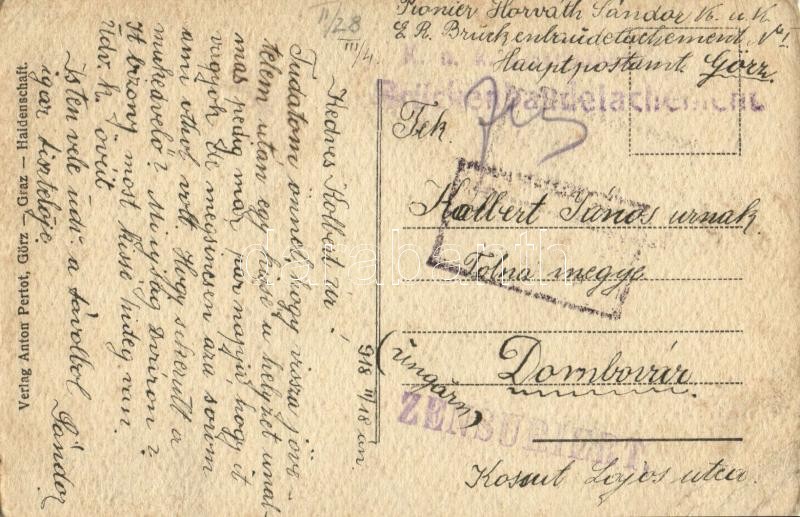 Beschreibung: 1918 Gorizia, Görz, Gorica; Zerstörte Via Morelli / street view during WWI + "K.u.K. Eisenbahnregiment Brückenbaudetachement" (EB)