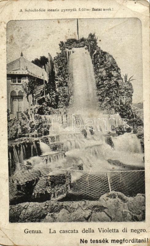 Genova, Genoa, Genua; La cascata della Violatte di negro / vízesés a Villetta Di Negro parkban / park, waterfall + Schicht-féle mosó- és háztartási szappanok reklám / soap advertisement (non PC) (EK)