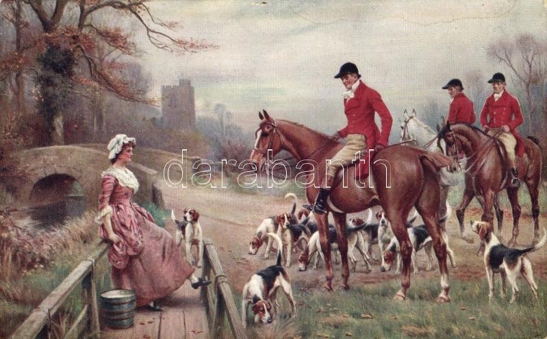 Hunters on horses with hunting dogs. M. Munk Vienne Nr. 573. https://www.darabanth.com/de/358-Fernauktion/358.0/Ansichtskarten/Jagd~1000085/Hunters-on-horses-with-hunting-dogs-M-Munk-Vienne-Nr-573~II2057204