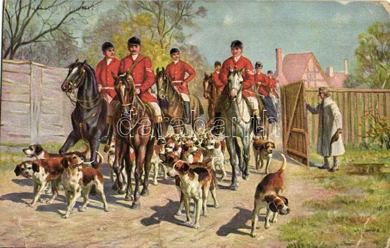 Hunters on horses with hunting dogs (tear) https://www.darabanth.com/de/358-Fernauktion/358.0/Ansichtskarten/Jagd~1000085/Hunters-on-horses-with-hunting-dogs-tear~II2057211