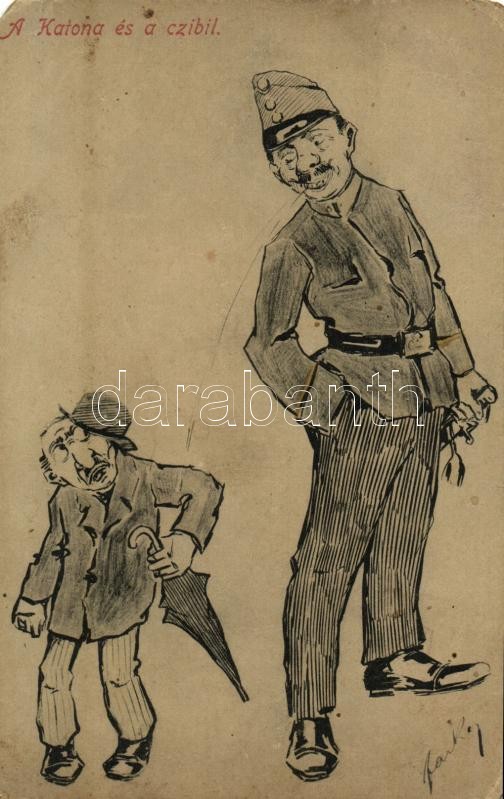 A katona és a czibil / Soldier and Jewish man. Judaica (EM) https://www.darabanth.com/de/358-Fernauktion/358.0/Ansichtskarten/Judaica~1000069/A-katona-es-a-czibil-Soldier-and-Jewish-man-Judaica-EM~II2056234